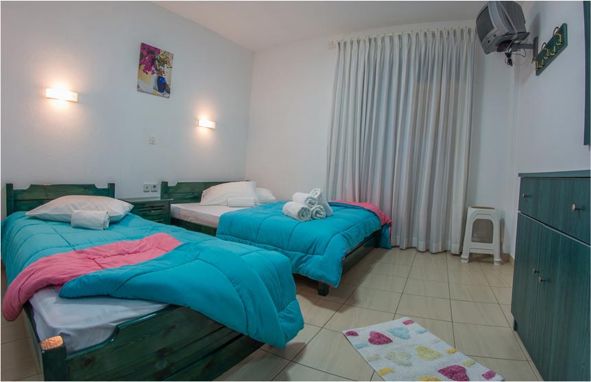 The location of House Abelos Suzana and the hospitable family spirit create a relaxing mood making a memorable accomodation. House Abelos SUZANA has 9 rooms, an apartment of two separate spaces and 8 triple rooms and quadruple rooms. Waiting for you!