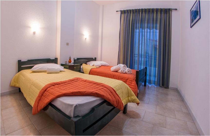In the main room of the apartment there is a double bed. In addition there is Air Condition, TV Set, WC, fridge, cooker with two hobs fully equiped with cookware.